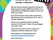 Liebe Schüler:innen, das Kulturrucksack-Programm des Landes NRW richtet sich an alle 10- bis 14-Jährigen und bietet zahlreiche Möglichkeiten, um die vielseitige Kulturlandschaft in Münster aktiv zu erleben und mitzugestalten. Weitere […]