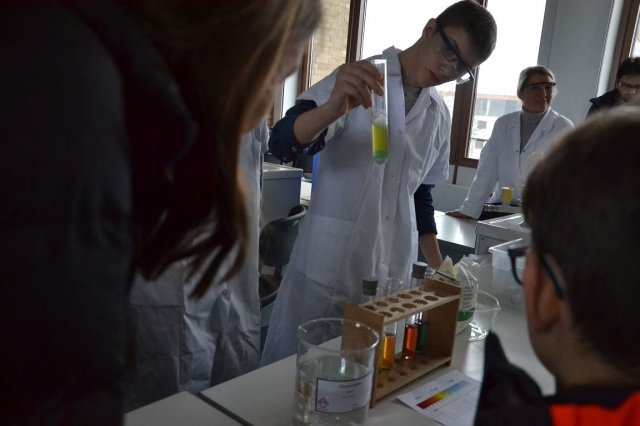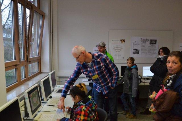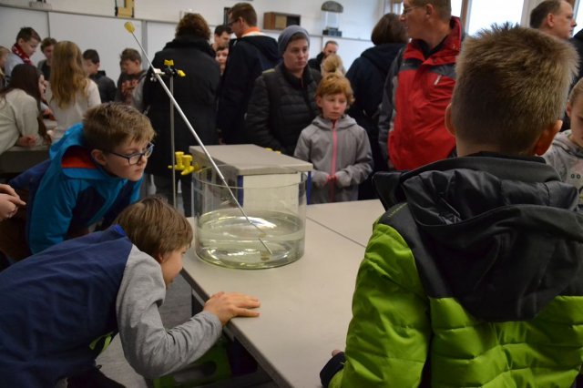 Danach konnten alle Eltern und die vielleicht zukünftigen Schülerinnen und Schüler die EKS noch einmal genauer „unter die Lupe“ nehmen: Ergebnisse des Kunstunterrichts waren zu bestaunen und die Kolleginnen und Kollegen gaben unter tatkräftiger Mithilfe der Schülerinnen und Schüler der verschiedenen Jahrgangsstufen Einblicke in ihre Fächer und luden zum Mitmachen ein. Ein Einblick in die faszinierende Welt der Robotertechnik und Experimente in den Naturwissenschaften (Biologie, Chemie, Physik) waren nur einige der Angebote, die die Interessierten nutzen konnten.