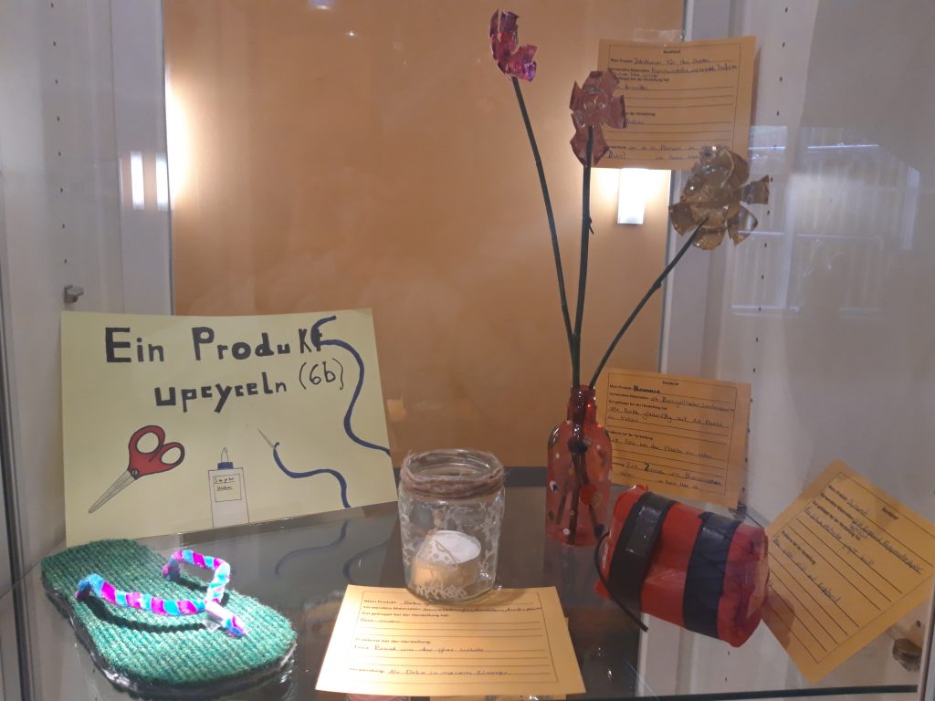 Nach dem Motto: „Aus Alt mach Neu“ erstellten die Schüler:innen der Klasse 6b im Rahmen des Wirtschaftsunterrichts „Upcycling-Produkte“.