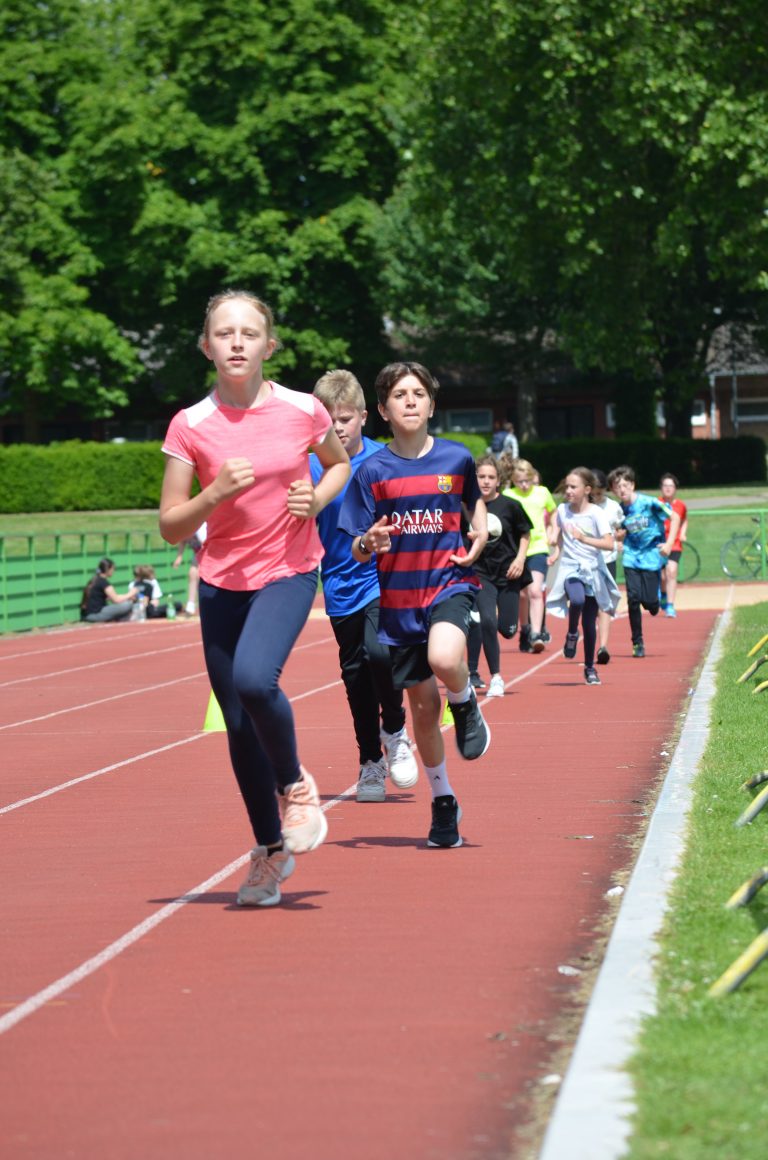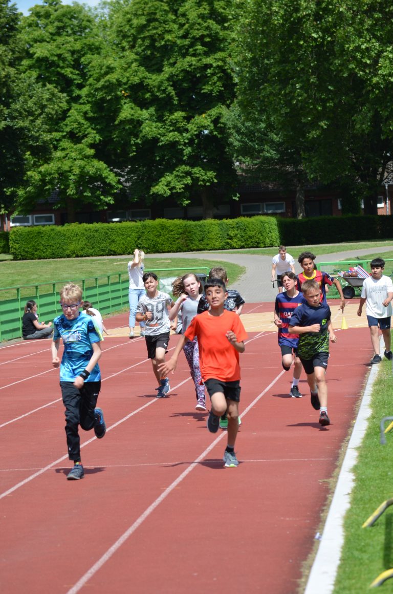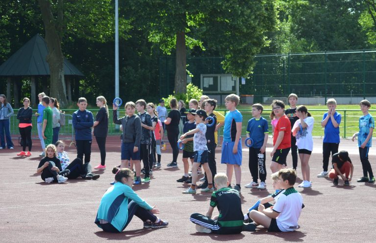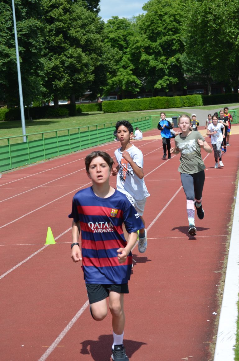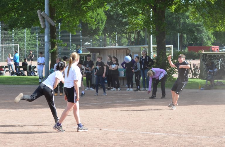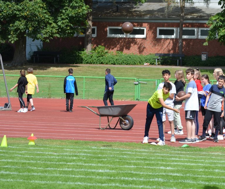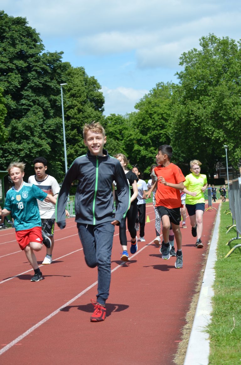 Die Jahrgangsstufe 5 trat in einem Leichtathletik-Mannschaftswettkampf gegeneinander an, die Jahrgangsstufe 6versuchte sich im Völkerball. Während sich die Jahrgangsstufe 8 mit der Sportart Fußball auf vertrautem Terrain bewegte,
