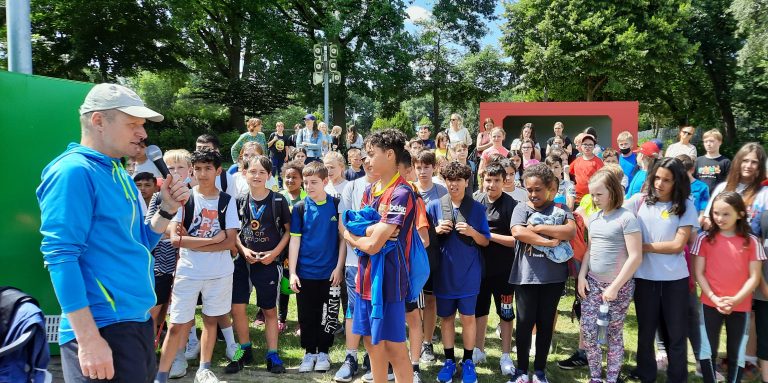Der Ehrgeiz war in allen Stufen deutlich zu erkennen. Alle Schüler*innen wollten zeigen, wie gut sie trainiert hatten. Schlussendlich gab es ganz viele Sieger:innen: zuerst natürlich die jeweiligen Mannschaften, die gewonnen hatten, dann aber auch alle anderen, die einen tollen Tag jenseits der Klassenzimmer erleben durften.