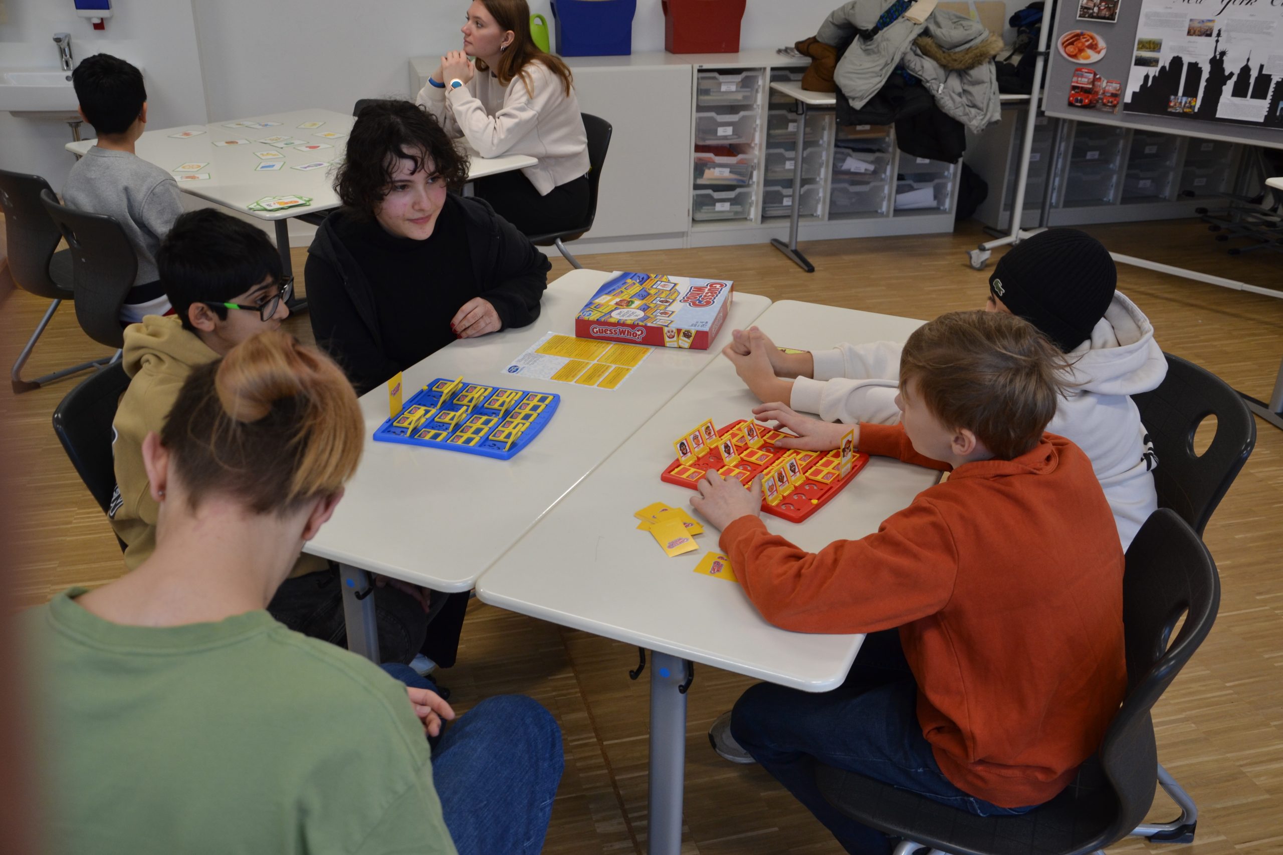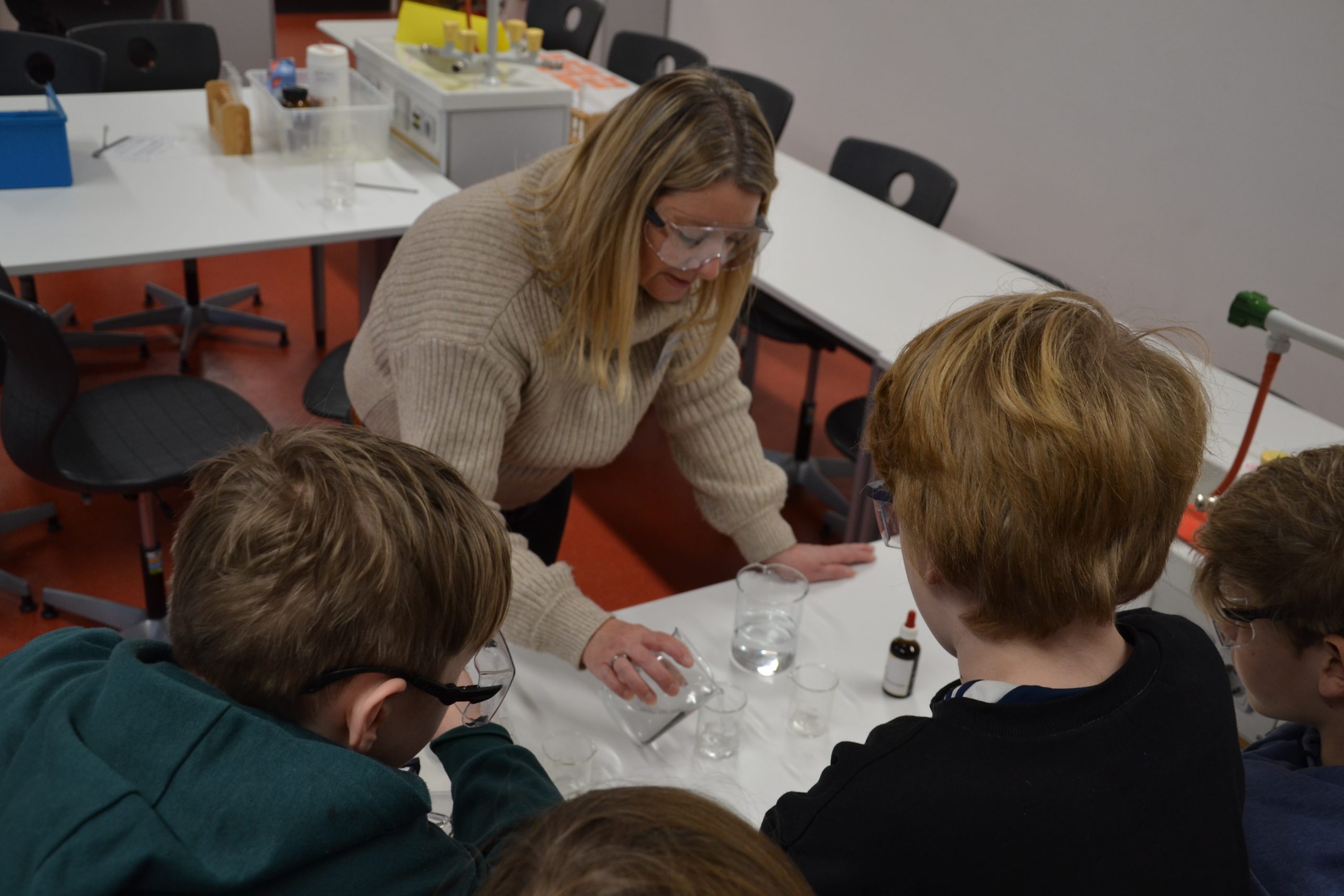 Während die Schulleiterin Frau Schöppner die zahlreich anwesenden Eltern über die Realschule am Aasee informierte, insbesondere über die neuen Möglichkeiten nach dem An- und Ausbau der EKS, konnten die Kinder in zahlreichen Spielen, Experimenten und Basteleien die Schule, die Fächer und die Kolleg:innen, unterstützt von vielen engagierten Schüler:innen, kennenlernen. Selbst Schulhündin Polly gab ihr Bestes.