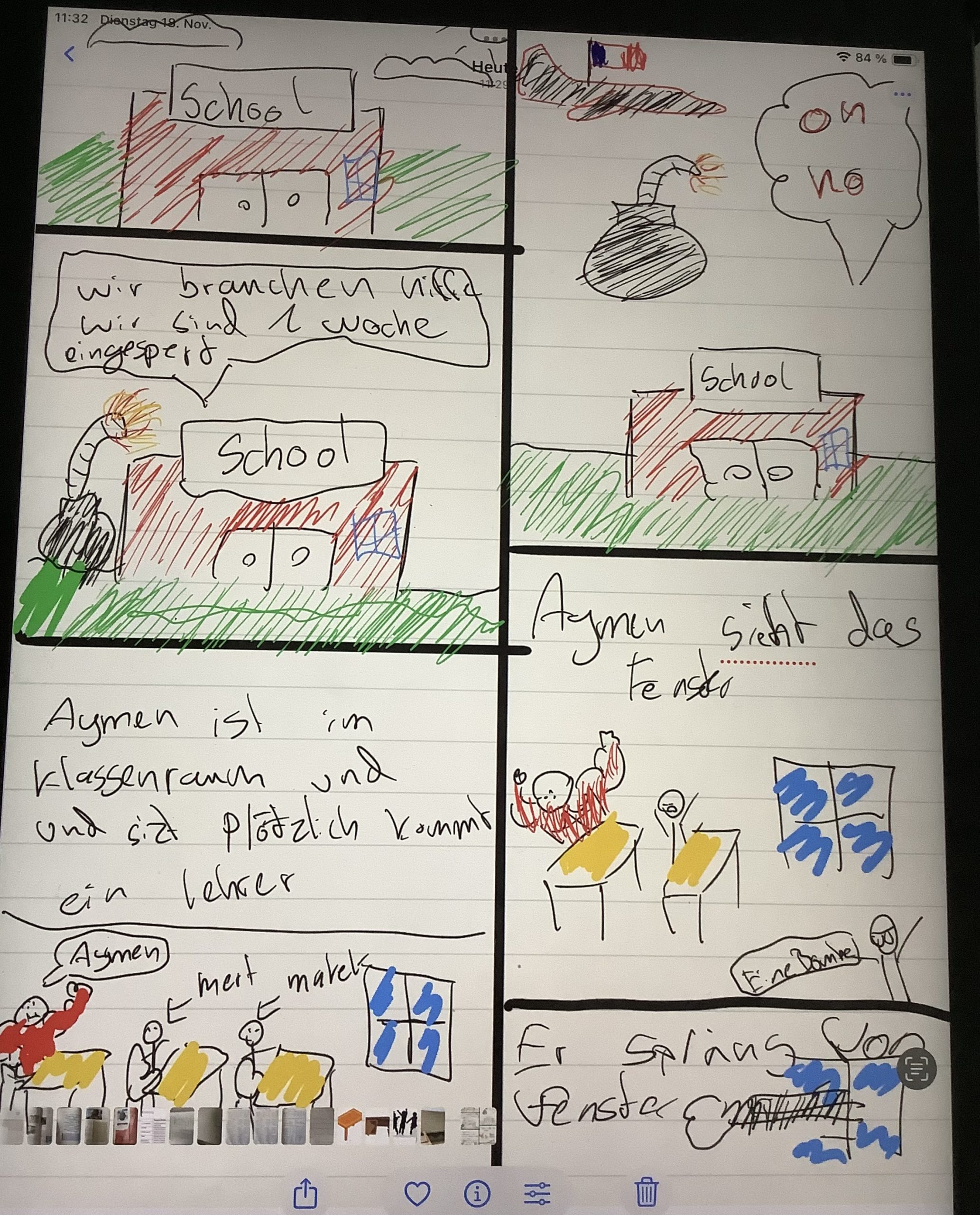 Was tun wir, wenn wir nichts mehr zu essen haben? Werden wir Herrn Bitters Kiosk plündern? Werden die Stärksten alles bekommen und die anderen nichts? Die Schülerinnen und Schüler haben sich genau mit dieser Frage auseinandergesetzt und Comics gestaltet.