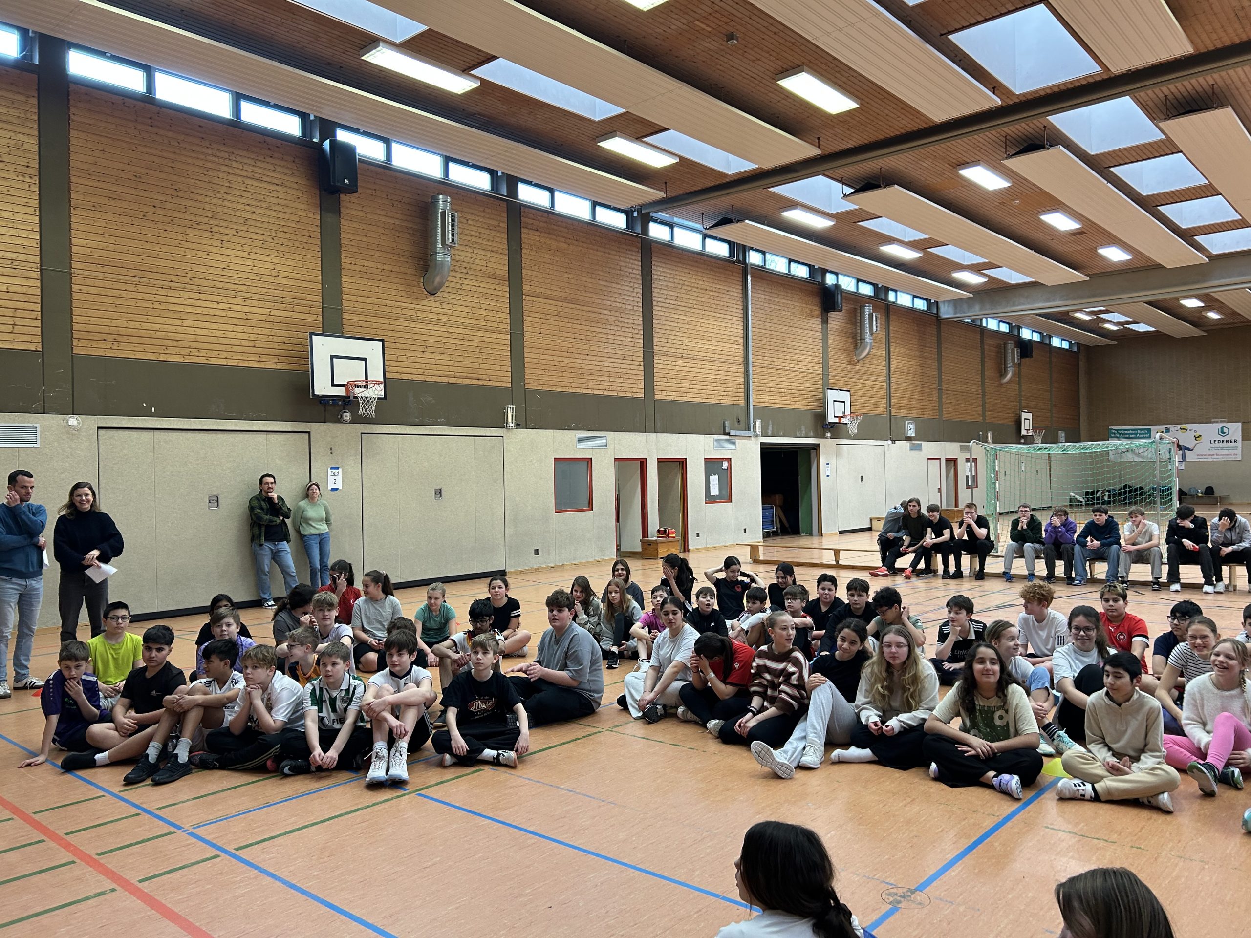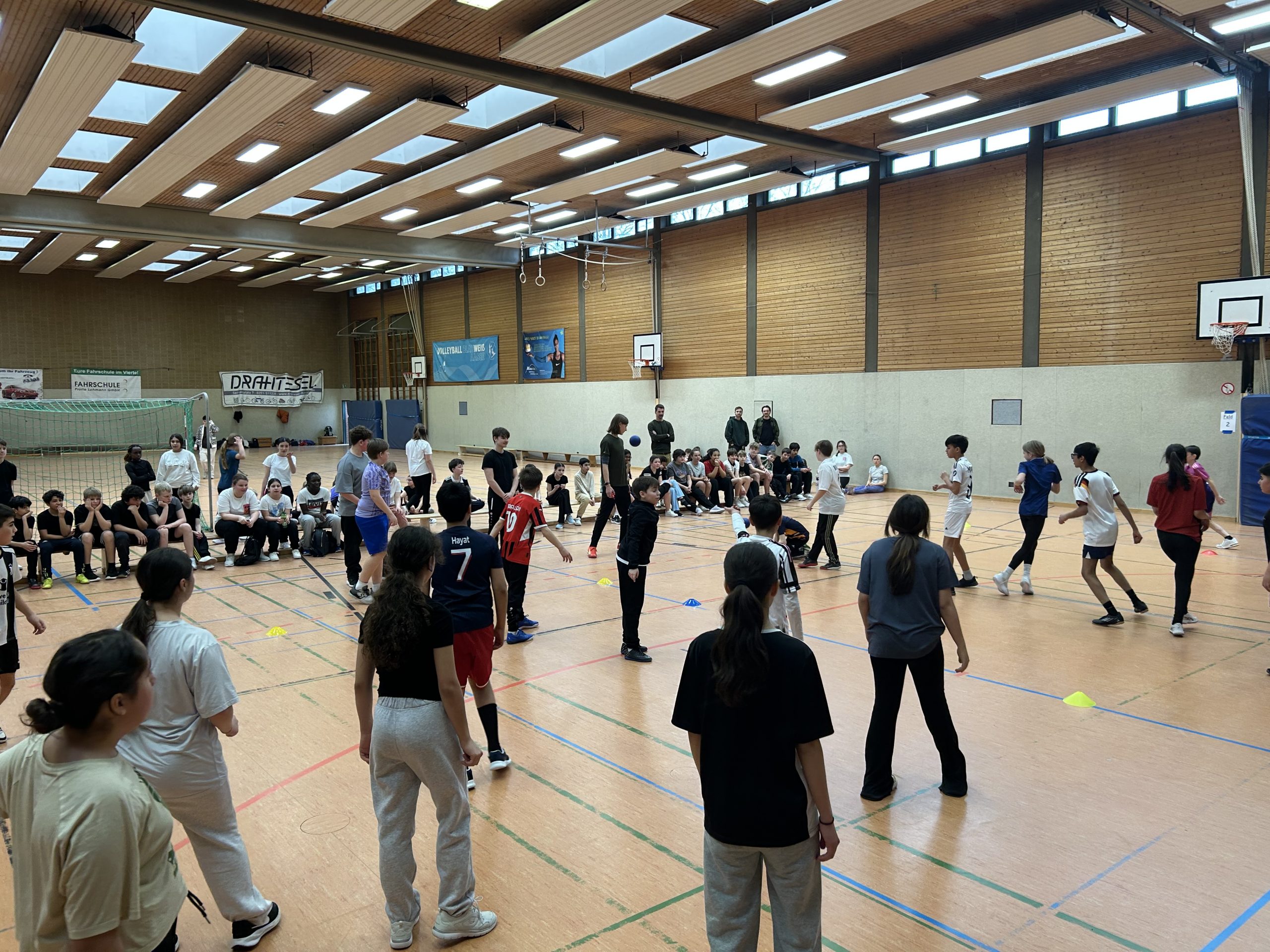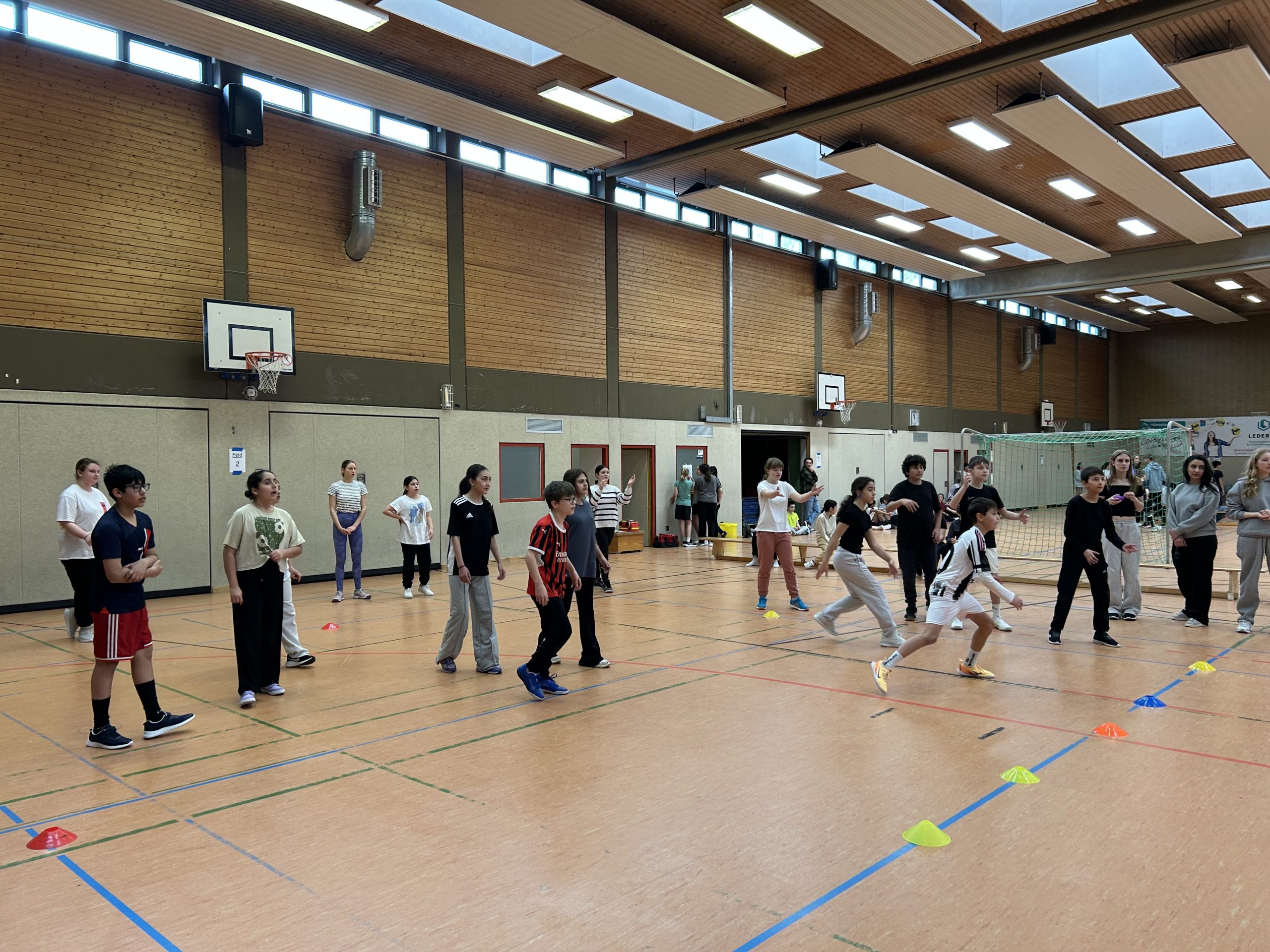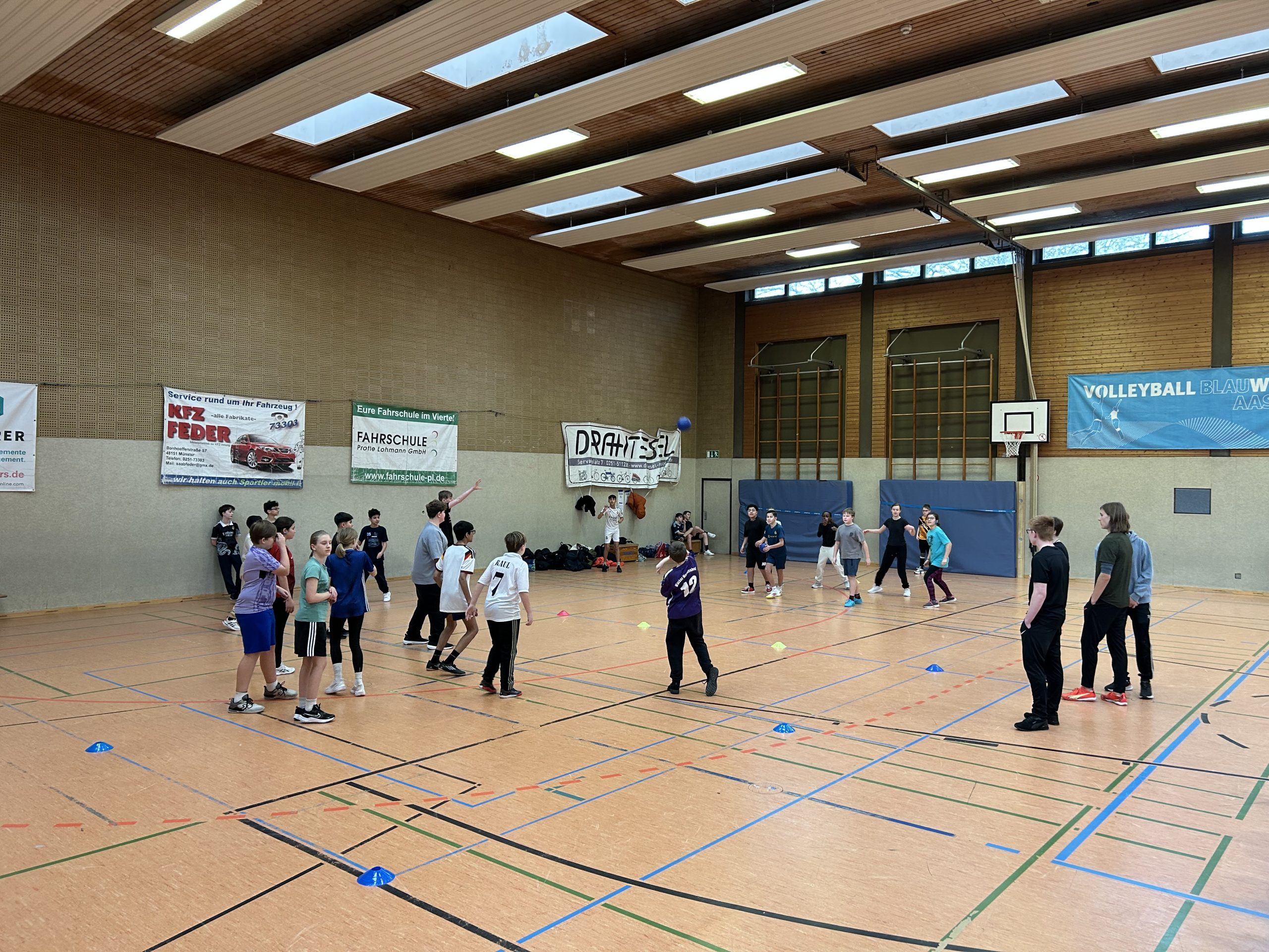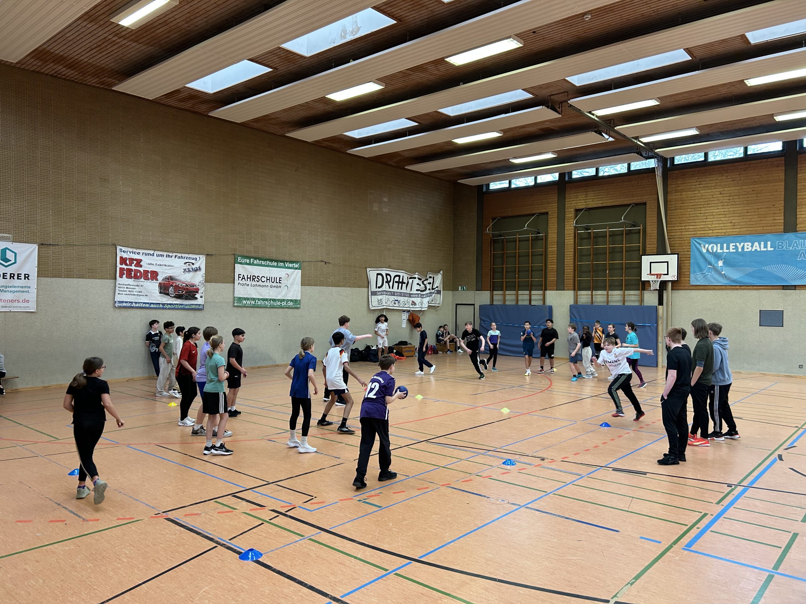 Die Jahrgänge 5 und 6 spielten jeweils ein Völkerballturnier. In gemischten Mannschaften ging es vor allem um Fair Play.