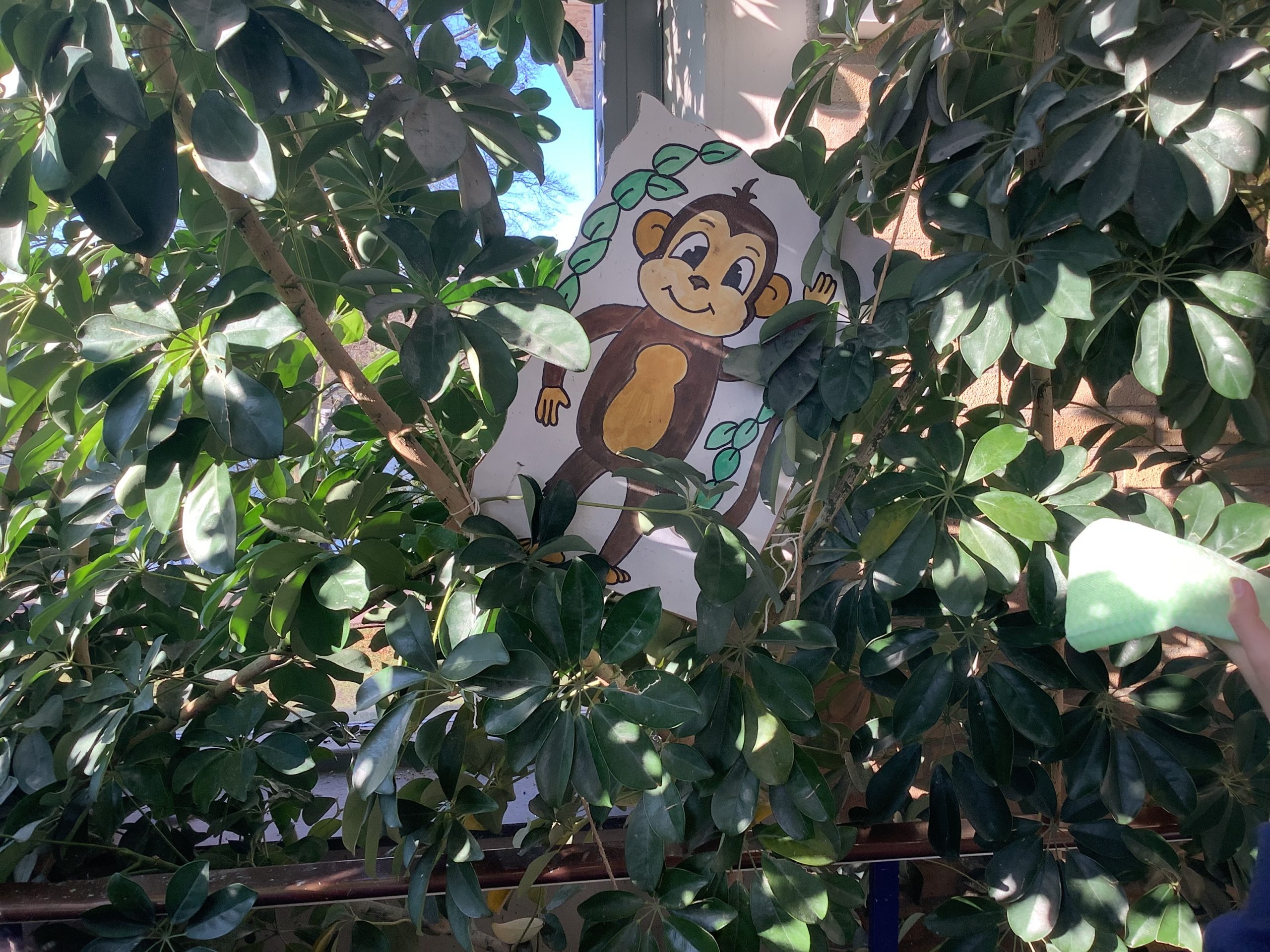 Uns fiel die dicke Staubschicht auf, die sich während der Bauarbeiten auf den Pflanzen niedergelassen hat. Kurzerhand bewaffneten wir uns mit Spritzflaschen und weichen Tüchern und fingen an vorsichtig die Blätter abzuwischen. – Dieses Projekt dauert noch an.